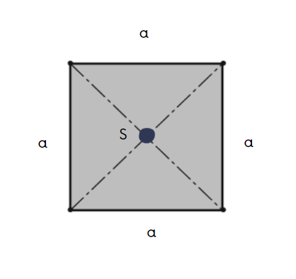 Narysuj kwadrat o boku a, w którym przekątne przecinają się w punkcie S. Nazwij trójkąty, które powstały z przecięcia kwadratu.
