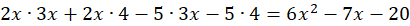 Żeby pomnożyć wyraz przez nawias wymnóż każdy element w pierwszym wyrażeniu przez każdy element w nawiasie, a następnie zsumuj te wyniki.