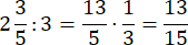 Aby wykonać to dzielenie, należy liczbę mieszaną zamienić na ułamek niewłaściwy i pomnożyć przez odwrotność liczby.