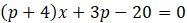 Przekształć równanie do postaci ax + b = 0. Następnie znajdź takie wartości parametru p, dla których wartość współczynnika a jest równa 0 oraz dla których jednocześnie wyraz wolny jest różny od 0. Warunki te spełnia tylko p = -4.