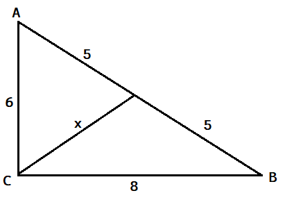 Na początku sprawdź, za pomocą twierdzenia odwrotnego do twierdzenia Pitagorasa czy trójkąt ABC jest prostokątny. Potem skorzystaj z własności mówiącej, że środkowa poprowadzona z wierzchołka kąta prostego w trójkącie prostokątnym jest równa połowie długości przeciwprostokątnej.