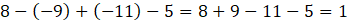 Przy dodawaniu liczby w nawiasach można zapisać bez nawiasów, pod warunkiem, że opuszczamy znak dodatni i dopisujemy liczby ze znakiem, jakie miały w nawiasie. Przy odejmowaniu liczby ujemnej, dwa minusy dają plus.