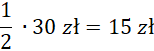 50% kwoty 30 zł to 15 zł