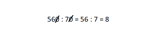 Jeśli dwie dzielone przez siebie liczby posiadają zera, można je o nie skrócić, aby ułatwić obliczenie. Skreślamy taka sama ilość zer u każdej liczby.