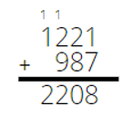 Musisz obliczyć sposobem pisemnym 1221 + 987.