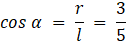 W tym zadaniu musisz obliczyć promień podstawy stożka o wysokości 16 cm i tworzącej nachylonej do płaszczyzny podstawy stożka pod takim kątem α, że .