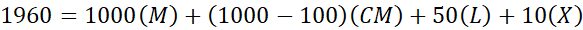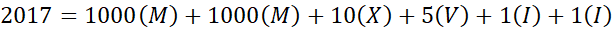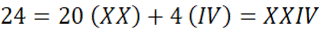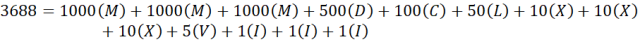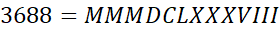 24 = XXIV, 38 = XXXVIII, 564 = DLXIV, 879 = DCCCLXXIX, 1960 = MCMLX, 2017 = MMXVII, 3688 = MMMDCLXXXVIII