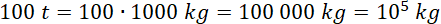 W tym zadaniu musisz zamienić sto ton na kilogramy i wynik zapisać w postaci potęgi o podstawie 10.