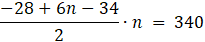 Najpierw do wzoru na sumę wyrazów ciągu wstaw wartość pierwszego i ostatniego wyrazu ciągu. Otrzymasz równanie kwadratowe z niewiadomą