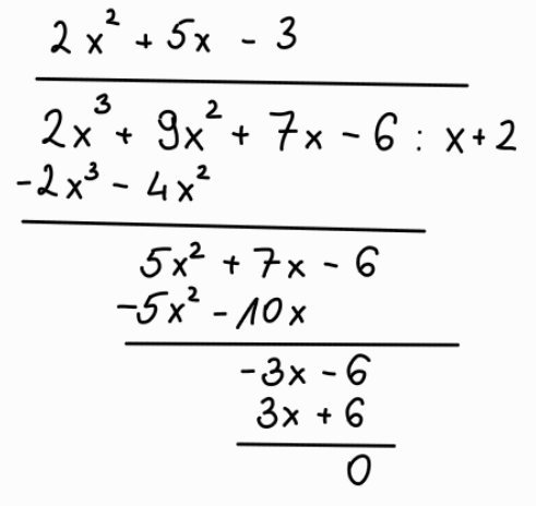 Wykonaj zgodnie ze wszystkimi zasadami dzielenie pisemne wielomianu po prawej stronie równania przez znany dwumian po lewej stronie równania. Wielomian W(x) jest wynikiem dzielenia wielomianu
