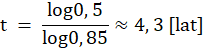 Obliczasz, po jakim czasie populacja komarów zmniejszy się o połowę, czyli będzie wynosiła 1 milion: