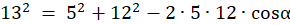 W trójkącie kąt o największej mierze znajduje się naprzeciwko najdłuższego boku. Miarę kąta leżącego naprzeciwko boku o długości 13 oznaczasz przez α. Korzystając z twierdzenia cosinusów, wyznaczasz miarę tego kąta.