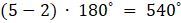 Wyznacz sumę miar kątów wewnętrznych: pięciokąta foremnego.