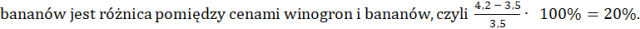 Aby obliczyć o ile procent winogrona są droższe od bananów należy ustalić jakim procentem ceny