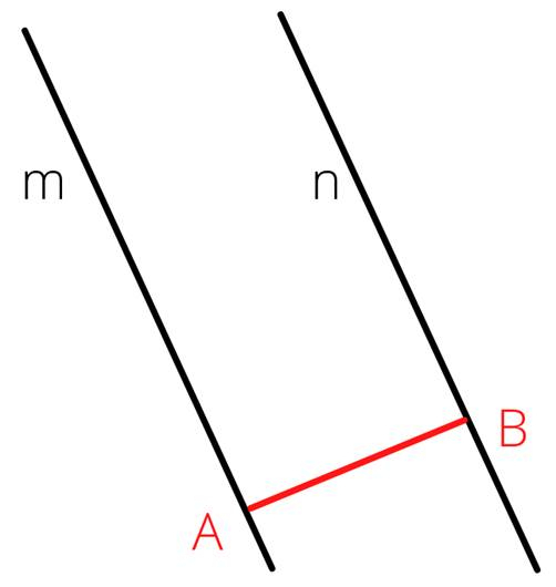 Odległość pomiędzy prostymi zawsze wyznaczamy pod kątem prostym.