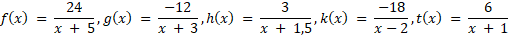 Wskaż te funkcje w poniższych, które przechodzą przez punkt K(-1,6).
