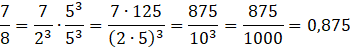 To zadanie powinieneś rozpocząć od zamiany mianownika na potęgę 2. Następnie musisz przemnożyć licznik i mianownik przez 5 do tej samej potęgi co 2. Po wykonaniu iloczynu musisz zamienić ułamek zwykły na dziesiętny.
