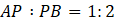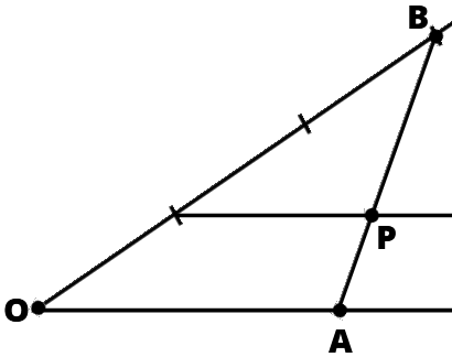Odłóż na odcinku OB takie przedziały, by półprosta przechodząca przez P i równoległa do OA dzieliła go w stosunku