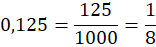 W tym zadaniu przestaw ułamek dziesiętny 0,125 w postaci ułamka zwykłego i jeśli to możliwe, skróć otrzymany ułamek.