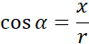Cosinusem kąta α nazywamy stosunek odciętej punktu P (pierwszej współrzędnej) do odległości tego punktu