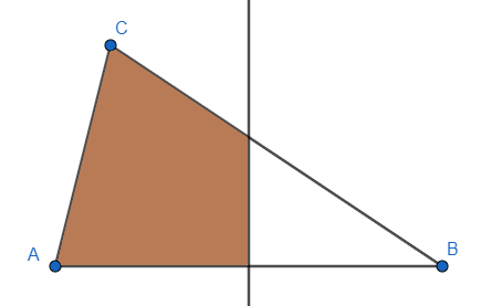 Narysuj trójkąt w zeszycie, a następnie zaznacz część trójkąta, która zawiera punkty leżące bliżej wierzchołka A niż B i zamaluj ją.