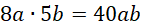 Wprowadź zmienne a oraz b, które będą liczbami całkowitymi. Dowolna liczba podzielna przez 8 to 8a, a przez 5 to 5b. Zapisz ich iloczyn:
