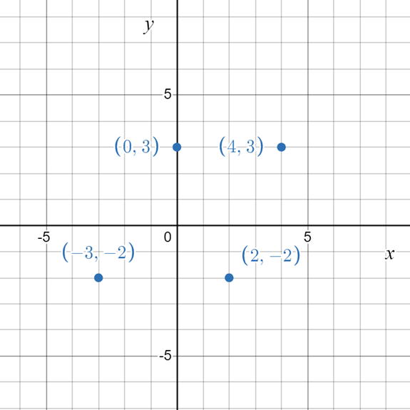 Aby przedstawić funkcje na wykresie, zaznacz w układzie współrzędnych punkty: (-3, -2), (0, 3), (2, -2), (4, 3). Zauważ, że pierwsza współrzędna punktu to wartość x, a druga to odpowiadająca temu x wartość y. W rozwiązaniu przy punktach zostały zapisane współrzędne, aby łatwiej było Ci zaznaczyć punkty w ćwiczeniach – nie musisz ich zapisywać.