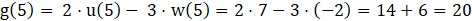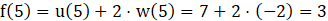 Podstawiamy argument 5 w miejsce x we wzorach funkcji f i g, które są kombinacją funkcji u i w.