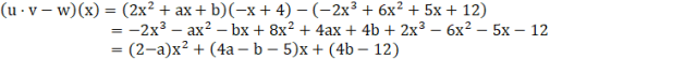 Najpierw tworzymy wielomian z treści zadania, a potem porównujemy każdy z jego współczynników do 0, aby ustalić Jakie powinny być wartości a, b, aby wielomian był zerowy.