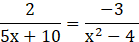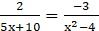 Wyrażenie w mianowniku ułamka musi być różne od zera. Definiujemy założenia, a potem mnożymy na krzyż. Przerzucamy wszystkie wyrazy na jedną stronę równości i wyznaczamy miejsca zerowe. Jeżeli pierwiastki należą do dziedziny, to są rozwiązaniami równania.