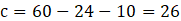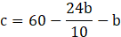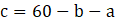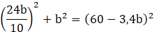 Suma przyprostokątnych i przeciwprostokątnej wynosi 60. Wyznaczamy długość przeciwprostokątnej z tego równania. Korzystając ze stosunku tangens, przyprostokątnej naprzeciwko kąta, do tej drugiej przyprostokątnej, wyznaczamy a. Podstawiamy do wzoru wcześniej wyznaczonego na c, a następnie obie niewiadome wyrażone za pomocą niewiadomej b podstawiamy do wzoru z twierdzenia Pitagorasa.