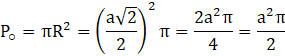 Odejmij od siebie wartości pola powierzchni kwadratu o boku a oraz koła na nim opisanego.