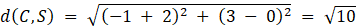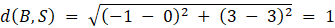 Odległości między punktami A, B i C od punktu S wyglądają następująco: