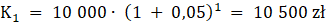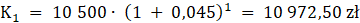 Kapitał końcowy złożony na lokacie przy kapitale początkowym K złożony w banku na n lat przy rocznym oprocentowaniu r i kapitalizacji odsetek m razy w roku wyznaczysz ze wzoru: