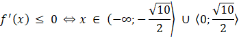 Badając znak pochodnej, dostajemy, ze: