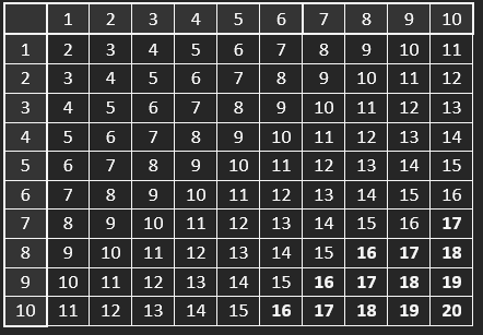 W tym zadaniu musisz obliczyć prawdopodobieństwo otrzymania sumy większej niż 15 na obu kulach, jeśli zwracasz kule po każdym losowaniu.