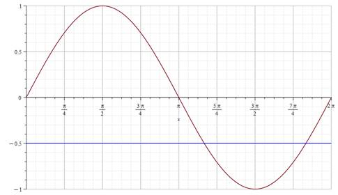 są dwa punkty przecięcia funkcji sinus z wykresem: