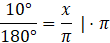 Oblicz miarę łukową kąta 10°: