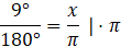 Oblicz miarę łukową kąta 9°: