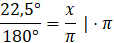 Oblicz miarę łukową kąta 22,5°: