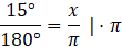 Oblicz miarę łukową kąta 15°: