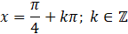 Rozwiązań tego równania jest nieskończenie wiele, a różnica pomiędzy kolejnymi z nich wynosi π, co wynika z okresowości funkcji tangens. Zatem: