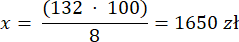 W tym zadaniu musisz obliczyć cenę wycieczki, jeżeli biuro turystyczne Riviera w przypadku rezygnacji z wycieczki nie zwraca pełnej wypłaconej kwoty i jeśli rezygnacja z wyjazdu nastąpi miesiąc przed terminem wyjazdu, to biuro potrąca 132 zł, czyli 8% ceny wycieczki.