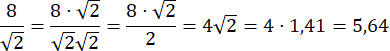 Aby wykonać to zadanie, musisz usunąć niewymierność z mianownika, w tym celu pomnóż przez pierwiastek znajdujący się w mianowniku, zarówno mianownik jak i licznik.