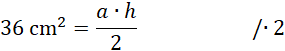W tym zadaniu musisz obliczyć obwód trójkąta równoramiennego wiedząc, że jego pole jest równe 36 cm2 oraz że podstawa tego trójkąta jest cztery razy dłuższa od wysokości opuszczonej na tę podstawę.