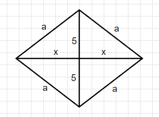 Zauważ, że x jest połową dłuższej przekątnej rombu.