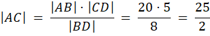 Wyznacz długość odcinka AC, wiedząc, że w trójkącie ABC dwusieczna kąta przy wierzchołku A przecina przeciwległy bok w punkcie D oraz dane są długości |BD| = 8, |DC| = 5, |AB| = 20.