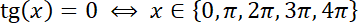 Tangens ma pierwiastki dla argumentów, które spełniają równanie: