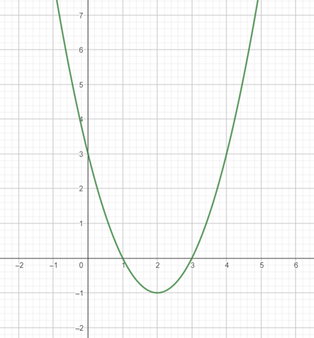 Miejsce przecięcia się z osią OY to wartość funkcji w zerze, natomiast miejsca przecięcia się funkcji z osią OX, to argumenty, dla których funkcja ma wartość zero – inaczej mówiąc, miejsca zerowe tej funkcji. W naszym przypadku wyróżnik trójmianu kwadratowego (delta) jest dodatni, zatem miejsca te istnieją – znajdujemy je, podstawiając do wzoru: