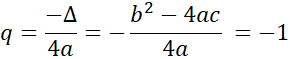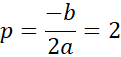 Dodatkowo liczymy współrzędne wierzchołka naszej paraboli (p, q) korzystając ze wzorów: